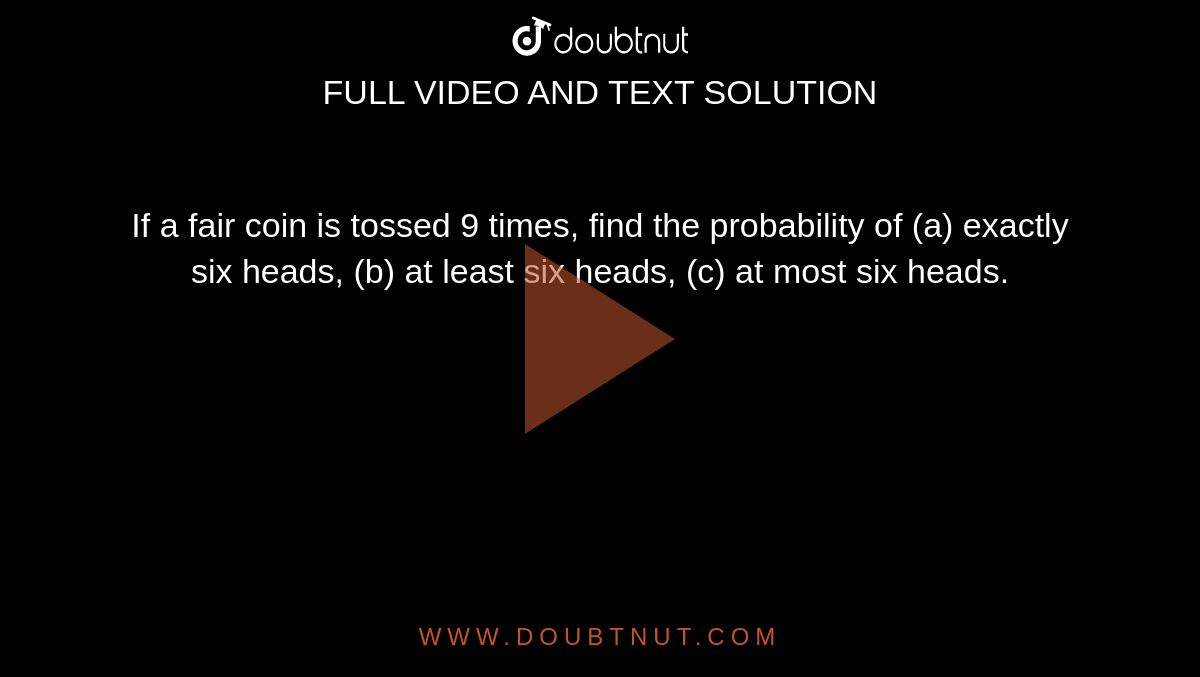 If A Fair Coin Is Tossed 9 Times Find The Probability Of A Exactly Six Heads